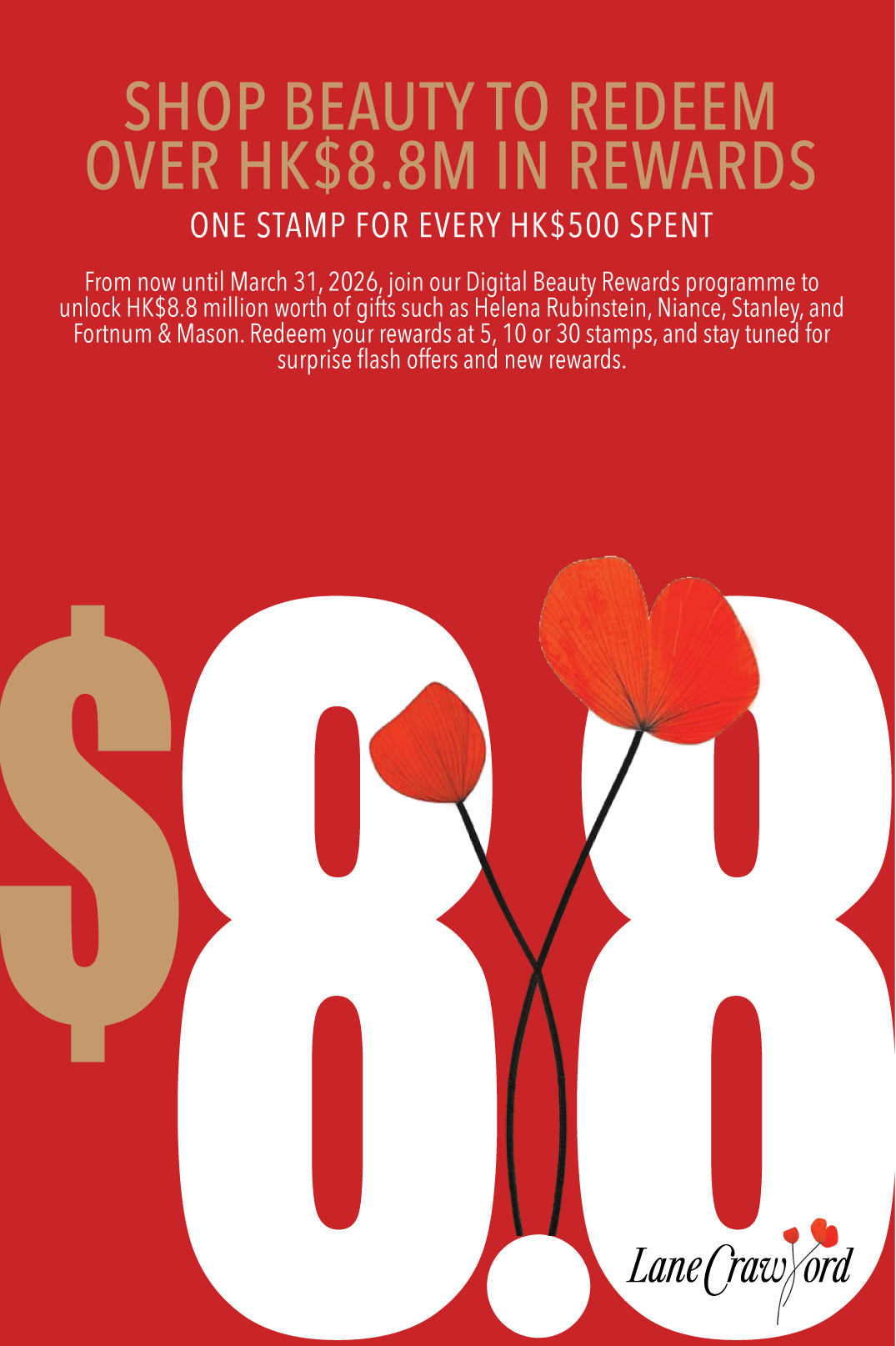 From now until March 31, 2026, join our Digital Beauty Rewards programme to unlock HK$8.8 million worth of gifts such as Helena Rubinstein, Niance, Stanley, and Fortnum & Mason. Redeem your rewards at 5, 10 or 30 stamps, and stay tuned for surprise flash offers and new rewards.