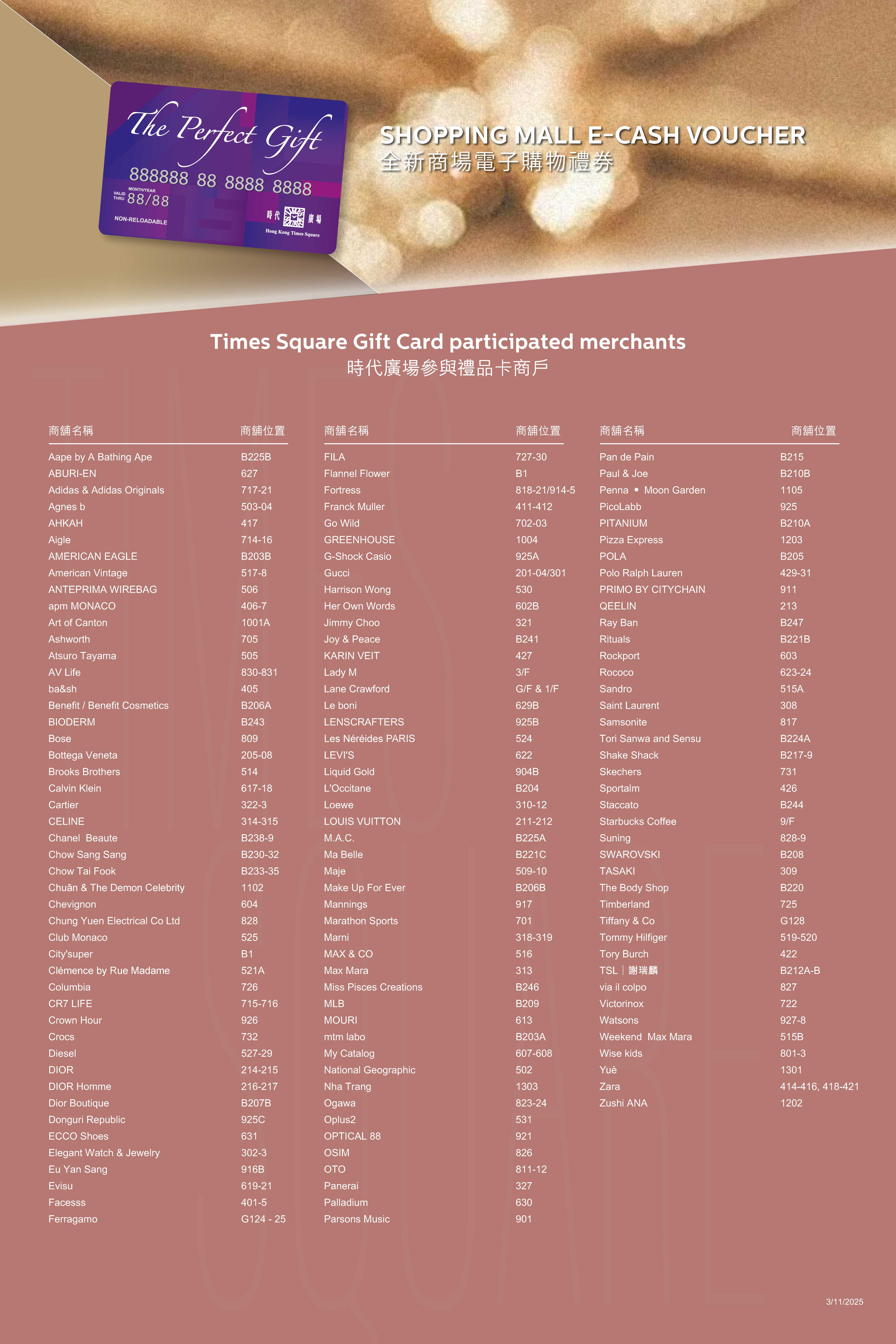 We all know it is hard to choose the best gift to give, it is always a hard time when choosing the right brand with the right thing within limited time and limited budget. Right before the gift season, the Times Square has prepared the best option for you – “The Perfect Gift” Gift Card. Widely accepted by more than 200 merchants in Times Square, The perfect gift card allows you to spend the amounts in different merchants starting from top luxury brands, top selling skin care and cosmetic brands, well known electronic stores, famous sportwear brands to international gourmet cuisines.