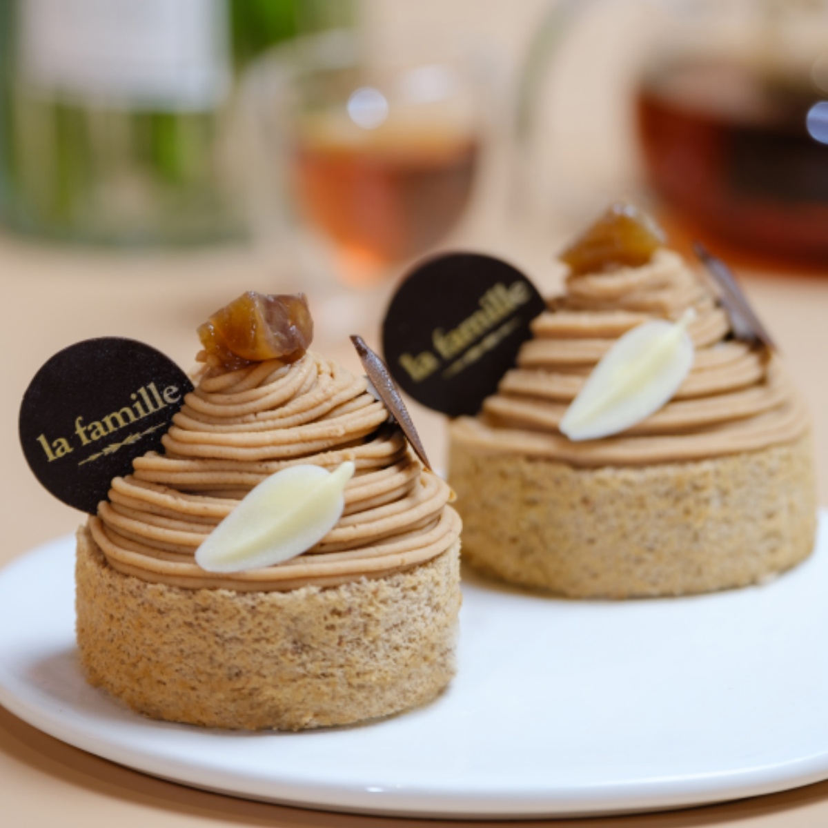 冬日甜点之选- La Famille 的「冲绳黑糖栗子蒙布朗」,以日本丹波秋栗及法国优质栗子制成幼滑栗子蓉,配上混合冲绳黑糖的戚风蛋糕为基底,带有微微焦香的黑糖与栗子蓉的绵密细滑完美融合,恰到好处的甜度令人一试难忘,是冬日午后最优雅的一抹甜意。
