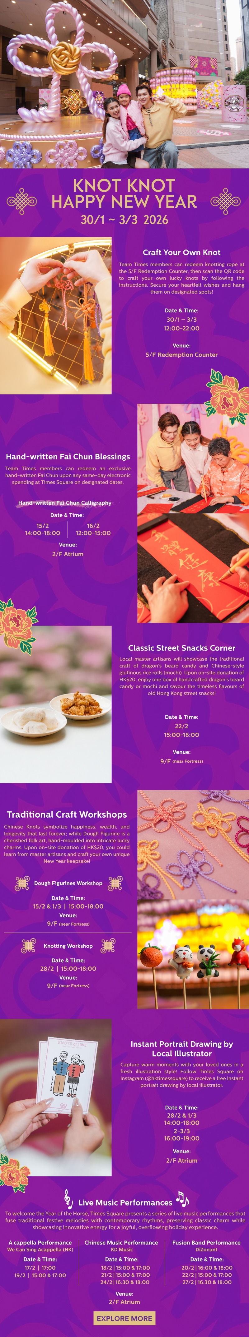 时代广场将于新春期间融合传统工艺与当代美学呈献一系列精彩现场表演、即席创作及互动体验,为大家带来满满祝福与匠心惊喜,共贺丰盛马年!